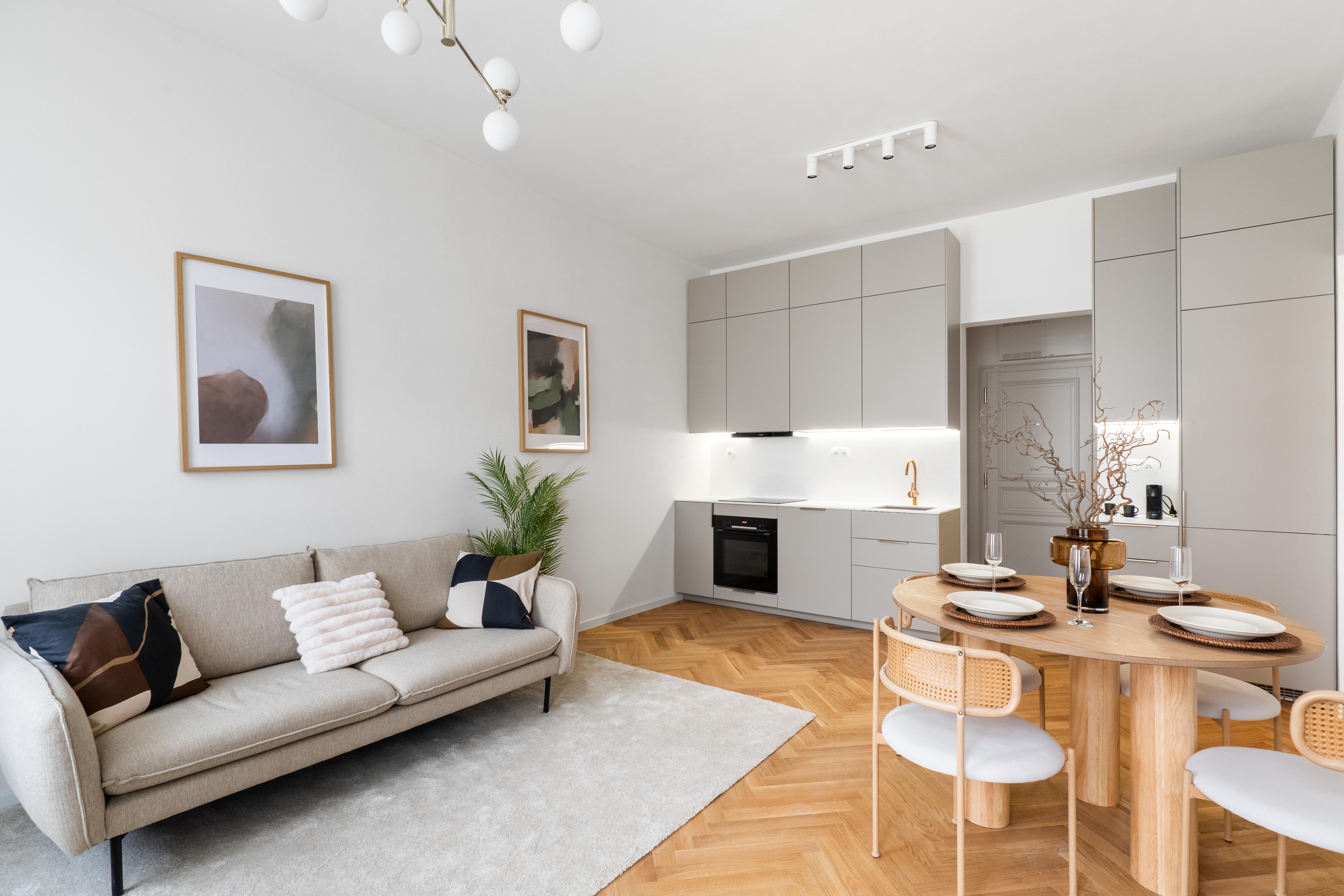 Každý prvek rekonstrukce domu v Chodské 28 je inspirován původními architektonickými návrhy a citlivě přizpůsoben moderním nárokům na komfort a estetiku. Při návrhu interiérů i standardů klademe důraz na nadčasový design, kvalitní materiály a řemeslné provedení.
